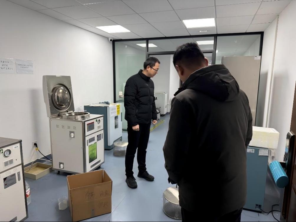 随后,开天瀚副院长走访了各系科研实验室,与实验人员进行交流,重申安全无小事,必须始终绷紧安全这根弦。他指出,全体师生应共同筑牢实验室安全屏障。必须坚持“安全第一”的原则,切实强化主体责任意识,在各目的岗位上恪尽职守,确保安全底线不容突破。实验室工作人员须将安全管理工作抓细抓实,确保寒假期间实验室安全、平稳运行。
